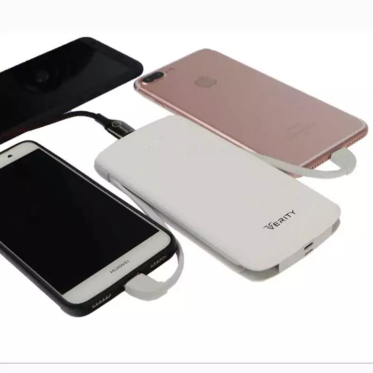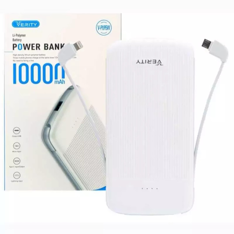 پاوربانک V-PU90B با ظرفیت اسمی ۱۰۰۰۰ میلی آمپر ساعت برای شارژ انواع گوشی های تلفن همراه مناسب بوده و در واقع می توان گفت این پاور بانک با این ظرفیت می تواند گوشی شما را حدود ۳ مرتبه شارژ کند. از مزایای این پاوربانک شارژ همزمان دو دستگاه است که با ۲ پورت خروجی یو اس بی ۲ آمپر و یو اس بی ۱ آمپر تعبیه شده روی آن این امکان را برایتان فراهم می کند تا بتوانید هر گوشی را متناسب با جریان مناسب آن شارژ کنید و از این مزیت بهره مند شوید، اگر بخواهید گوشی شما با سرعت بیشتری شارژ شود باید از خروجی یو اس بی ۲ آمپر پاوربانک V-PU90B برای شارژ تلفن همراه خود استفاده کنید. پاوربانک وریتی مدل V-PU90B نمایشگری با ۴ چراغ ال ای دی دارد که هر کدام از این چراغ ها ۲۵ درصد از شارژ پاوربانک را نشان می دهد، در نتیجه با روشن بودن هر تعداد از این چراغ ها شما می توانید از میزان شارژ باوربانک خود مطلع شوید. روی این پاوربانک ۲ پورت ورودی میکرو یو اس بی ۲ آمپر ، لایتنینگ ۱.۵ آمپر قرار دارد که امکان شارژ شارژ پاوربانک را با هر کدام از این دو کابل فراهم می کند تا بتوانید در هر کجا که هستید حتی اگر کابل شارژ پاوربانک خود را همراه نداشتید با هر کدام از این انواع کابل پاوربانک خود را شارژ کنید.