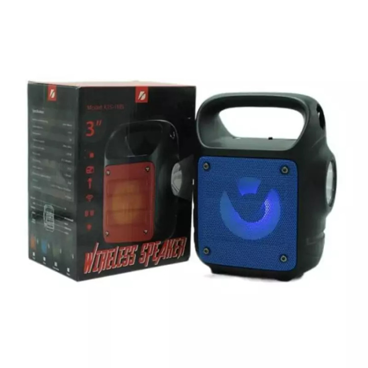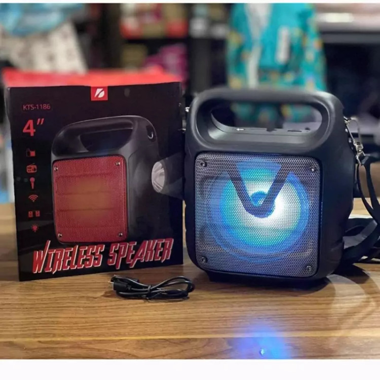 اسپیکر قابل حمل KTS-1185 مجهز به چراغ LED قوی دارای سه حالت زیاد- متوسط و چشمک زن میباشد که از این اسپیکر قابل حمل میتوان به عنوان چراغ شارژی نیز استفاده نمود ، این اسپیکر دارای باند خروجی به قطر سه اینچ و توان 5 وات با کیفیت صدای بسیار مناسب میباشد.با این اسپیکر میتوان از طريق فناوري بلوتوث به تلفنهمراه يا پخشکنندهي صوتي متصل شد. در قسمت بالایی اسپيکر يک درگاه USB و يک درگاه کارت حافظه به چشم ميخورد که از طريق آنها نيز میتوانید موسيقي دلخواهتان را گوش دهيد .این اسپیکر توانایی پشتیبانی از کارت حافظه و USB با ظرفیت 32 گیگا بایت را دارد. از ويژگي هاي ديگر اين اسپيکر ميتوان به راديو FM و ورودی میکروفون اشاره کرد. این اسپیکر دارای باطری قابل شارژ نیز میباشد. وجود نور با چندین رنگ متفاوت در قسمت جلویی اسپیکر، زیبایی خاصی را ایجاد نموده است .