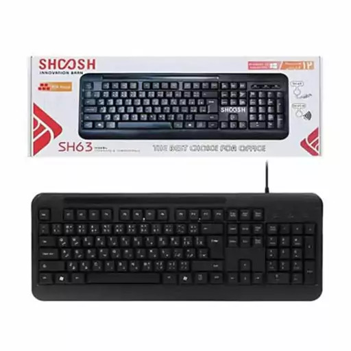 سایر توضیحات:کیبورد باسیم شوش مدل 63 از جنس پلاستیک با کیفیت سخت و متراکم و با طراحی ارگونومی ساخته شده است و محصولی با قیمت مناسب و کاربردی برای مصرف عمومی و روزانه کاربران است. این محصول دارای 104 کلید به همراه کلید های میانبر و چند رسانه ای با ضربه پذیری 8 میلیون بار کلیک می باشد. این کیبورد از طریق یک کابل USB به طول 1.5 متر به راحتی کامپیوتر شما متصل شده و با تمامی نسخه های سیستم عامل ویندوز سازگار است.